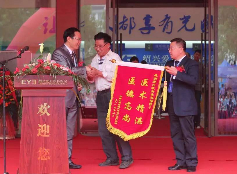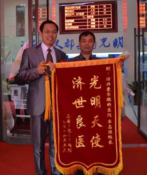患者張啟貴贈錦旗給紹興愛爾眼科醫(yī)院李志強院長